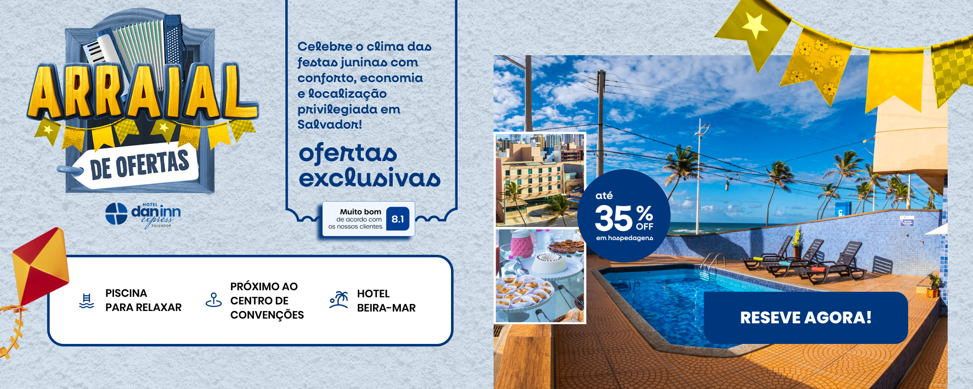 Aproveite uma estadia repleta de comodidade, economia e hospitalidade baiana com uma vista privilegiada do mar no Hotel Dan Inn Express Salvador. Desfrute de piscina ao ar livre, café da manhã cortesia com sabores regionais, Wi-Fi gratuito de alta velocidade e recepção 24 horas.